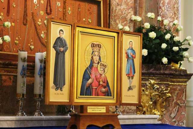 W refektarzu domu przy parafii na gości czekały kawa i herbata oraz ciasta i słodycze. Dzień wcześniej przyjechali klerycy z Wyższego Seminarium Duchownego Towarzystwa Salezjańskiego w Krakowie. Uroczystości rozpoczęły się o godz. 10.30 w bazylice Ofiarowania NMP uroczystą Mszą św. z formularza o Matce Bożej Różanostockiej koncelebrowaną przez 56 kapłanów pod przewodnictwem Dostojnego Solenizanta. Wszystkich zgromadzonych powitał ks. Daniel Kwietniewski, dyrektor domu przy Salezjańskich Dziełach Wychowawczych w Różanymstoku. Oprawę muzyczną tworzyły Różanostocki Chór i Orkiestra dęta, dyrygowane przez Reginę Sulik z towarzyszeniem organów, na których grał organista Ryszard Borys. Służbę liturgiczną tworzyli klerycy, lektorzy z Salezjańskich Dzieł Wychowawczych, przyjezdni i miejscowi ministranci. Homilię wygłosił ks. Adam Wtulich, proboszcz i kustosz sanktuarium. Stwierdził w niej, że listopad ponury od strony klimatycznej, w dziejach Różanegostoku jest jednym z najbardziej promiennych i radosnych. Oto bowiem w tym miesiącu roku 1658 miały miejsce pierwsze cudowne zdarzenia przy obrazie Matki Bożej na dworze Tyszkiewiczów. 10 listopada 1919 r. przybyli tu pierwsi salezjanie z ks. Walentym Kozakiem, a w tym samym miesiącu 1922 r. siostry salezjanki z m. Laurą Meozzi, Służebnicą Bożą, tworząc pierwszą swoją placówkę w Polsce. Tegoroczny listopad jest radosny z powodu Dnia Jedności Rodziny Salezjańskiej. Składając życzenia ks. Adam podziękował Inspektorowi za jego wielką życzliwość i troskę wobec współbraci oraz miłość do młodzieży. Poinformował też, że z okazji zbliżającej się setnej rocznicy powstania Inspektorii Św. Stanisława Kostki wykonany został tryptyk, który będzie peregrynował po salezjańskich placówkach tej prowincji. Jego centralną część stanowi kopia obecnego obrazu MB Różanostockiej, po bokach postacie św. Jana Bosko i św. Stanisława Kostki. Został wystawiona na ołtarzu Matki Bożej. Na zakończenie mszy św. ks. Inspektor dokonał jego poświęcenia. Dalsza część uroczystości miała miejsce w auli Salezjańskich Dzieł Wychowawczych, gdzie wychowankowie z tych placówek zaprezentowali część artystyczną przygotowaną pod kierunkiem nauczycieli i wychowawców. Nawiązywała do tego aspektu życia św. Jana Bosko, gdy w swojej młodości a później w pracy z młodzieżą korzystał ze swoich umiejętności cyrkowych i teatralnych. Chłopcy pokazali żonglerkę, popisy zręczności, jazdę na monocyklach, chodzenie na szczudłach, wreszcie widowisko słowno-muzyczne z grą świateł i cieni. Zebrani nagrodzili występy chłopców gromkimi owacjami. Potem były życzenia dla Solenizanta. Złożyły je s. Anna Orpik w imieniu sióstr salezjanek i Celina Sanik w imieniu salezjanów świeckich. Życzenia złożyła też młodzież. Ks. Inspektor serdecznie podziękował zgromadzonym za życzenia, modlitwę w jego intencji oraz wyrazy życzliwości i wsparcia, których doznaje nie tylko w z okazji imienin ale i na co dzień w swojej posłudze. Na zakończenie części oficjalnej nastąpiło uroczyste otwarcie Izby Pamięci ku czci Szczęsnego i Eufrozyny Tyszkiewiczów znajdującego się w krypcie Kościoła. Solenizanta przywieziono 2-konną bryczką w towarzystwie 2 jeźdźców, chłopców z Ośrodka. Konie hodowane są w gospodarstwie przy Salezjańskich Działach Wychowawczych. Przecięcia wstęgi dokonali: ks. Inspektor, ks. Proboszcz, projektant wystroju i ekspozycji Katarzyna Borowska, oraz Mariusz Abramowicz jako wykonawca prac adaptacyjnych. Potem obecni mogli zwiedzić ekspozycję poświęconą fundatorom konwentu dominikańskiego, dziejom sanktuarium i kultu Matki Bożej Różanostockiej. Na zakończenie był wspólny obiad na sali gimnastycznej szkoły salezjańskiej. Tam była okazja na złożenie życzeń od osób indywidualnych i przedstawicieli wspólnot uczestniczących w wydarzeniu. (Tadeusz Możejko SSW)
